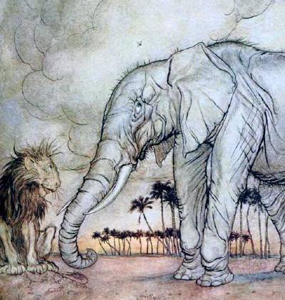 ლომი პრომეთე და სპილო, იგავი, ეზოპე